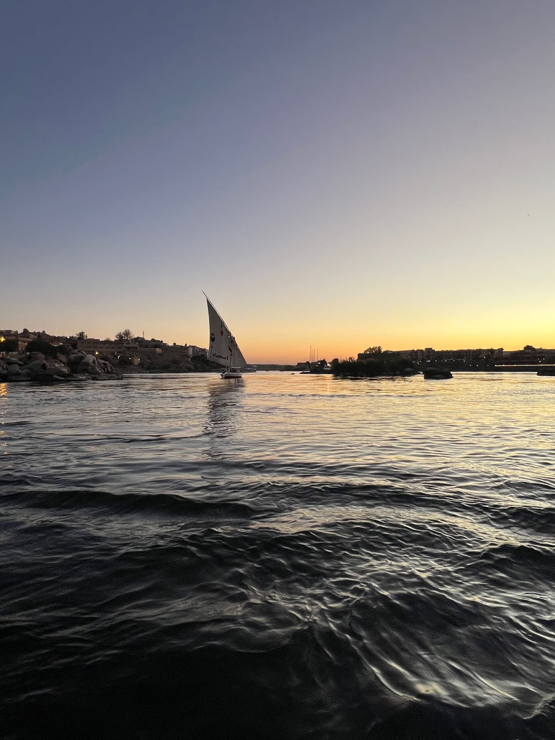The Magic of the Nile at Sunset: Sailing on the Nile during sunset was a peaceful, unforgettable experience. The sky turned orange and pink as we drifted along the calm waters. The landscape seemed to glow in the evening light, with palm trees and distant hills silhouetted against the setting sun.